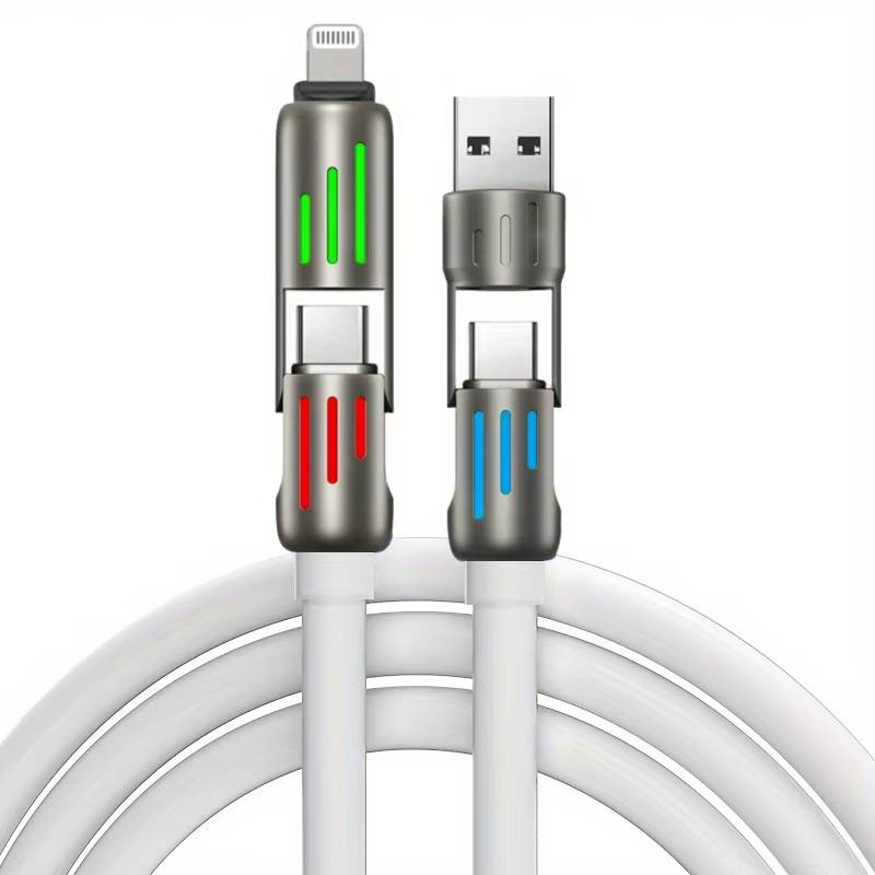 240W Ultra-Soft Silicone 4-in-1 Fast Charging Cable with RGB LED