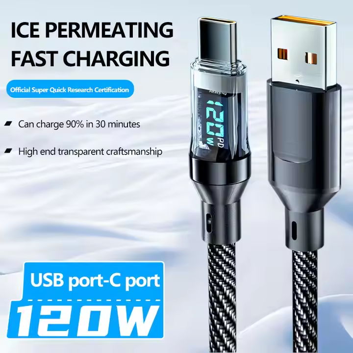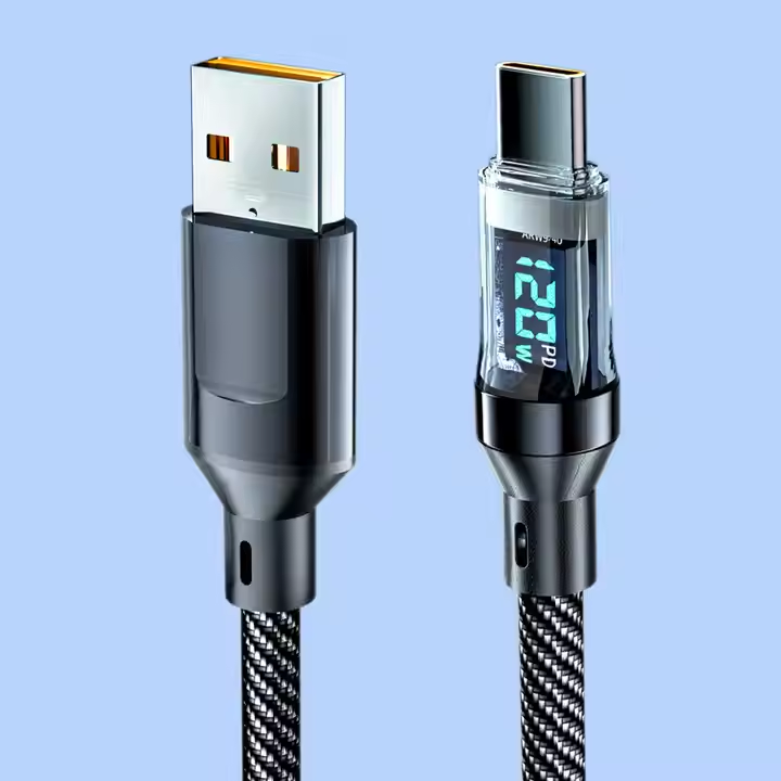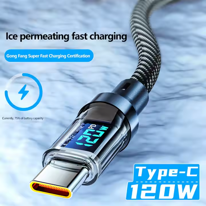 Fast Charge Data Cable Type-c to Type-c Smart Led Display Data Cable Fast Charging Braided Data Cable